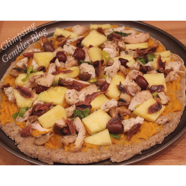 To combat the nightshade free part of my diet (what is a pizza without a tomato sauce?!), I have been slow roasting a pumpkin until it is so soft that it mashes easily. Then I have added salt, pepper and mixed herbs, and spread over the base. I can honestly say that I have not missed the tomato sauce – the pumpkin sauce is so tasty.